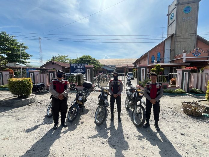Batu Bara – Pancapena.com – Dalam rangka menjaga situasi keamanan dan ketertiban masyarakat (kamtibmas), personel Satuan Samapta Polres Batu Bara melaksanakan patroli perintis roda dua dan pengamanan tempat ibadah gereja di wilayah hukum Polres Batu Bara, Minggu (06/04/2025).