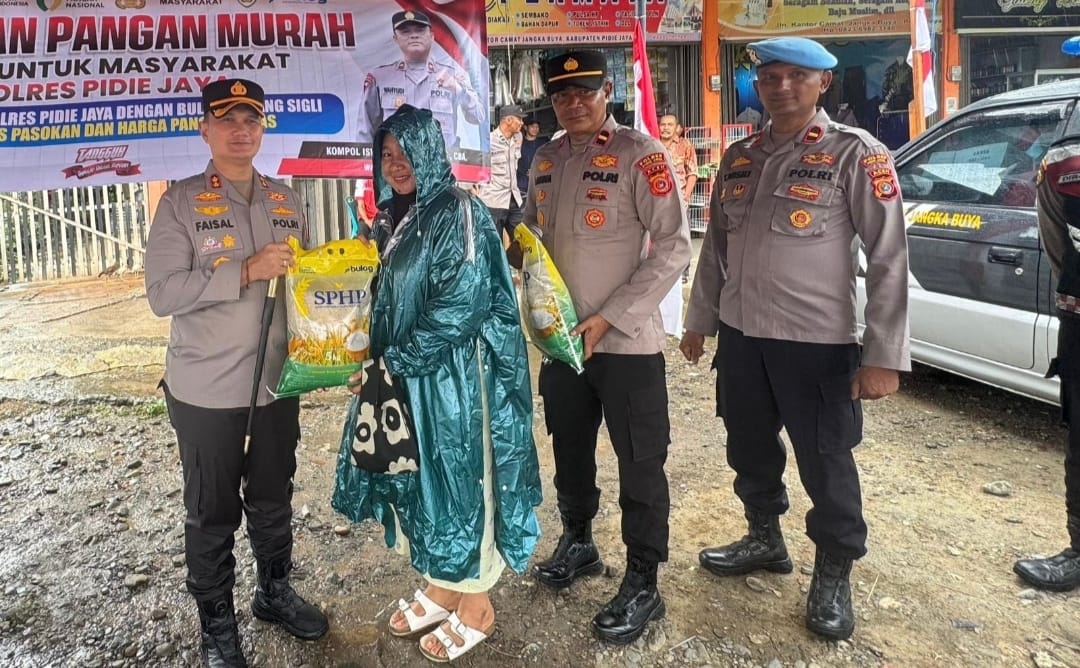 PIDIE JAYA — Pancapena.com – D3.000 Sak Beras Murah Disalurkan Polres Pidie Jaya di Bandar Dua dan Jangka BuyaPIDIE JAYA — Dalam rangka membantu meringankan beban ekonomi masyarakat, Polres Pidie Jaya melaksanakan kegiatan Gerakan Pangan Murah (GPM) dengan menyalurkan total 3.000 sak beras subsidi di dua kecamatan, yakni Bandar Dua dan Jangka Buya, pada Selasa (12/8/2025).Kegiatan ini merupakan bagian dari program Stabilisasi Harga Pangan (SPHP) yang bekerja sama dengan Bulog Cabang Sigli. Tujuan utamanya adalah untuk menekan inflasi daerah serta memastikan keterjangkauan harga bahan pokok, khususnya beras, bagi masyarakat berpenghasilan rendah.Sebanyak 1.600 sak beras ukuran 5 kilogram disalurkan di Kecamatan Bandar Dua, sementara 1.400 sak lainnya dibagikan di Kecamatan Jangka Buya. Beras tersebut dijual dengan harga Rp62.000 per sak, jauh di bawah harga pasar.Kapolres Pidie Jaya, AKBP Ahmad Faisal Pasaribu, memimpin langsung proses penyaluran didampingi jajaran polsek, perangkat gampong, dan elemen masyarakat. Di Kecamatan Bandar Dua, kegiatan dilangsungkan di halaman Masjid Tuha Gampong Keude Ulee Gle mulai pukul 09.00 WIB. Sedangkan di Jangka Buya, kegiatan berlangsung pada siang hari di Keude Jangka Buya.“Ini komitmen kami untuk memastikan tidak ada warga yang kesulitan pangan, terutama di tengah tantangan ekonomi saat ini,” ujar Kapolres Pasaribu dalam keterangannya kepada media.Distribusi dilakukan secara bertahap, dimulai dengan pembagian langsung di lokasi acara. Selanjutnya, bantuan disalurkan ke gampong-gampong terpencil oleh Kapolsek dan jajaran sebagai bentuk pelayanan aktif kepada masyarakat yang tinggal jauh dari pusat kecamatan.Program ini mendapat sambutan hangat dari masyarakat. Salah satu penerima bantuan, Said Abdullah (54), warga Jangka Buya, mengaku terbantu dengan adanya beras murah yang berkualitas baik. Ia berharap kegiatan semacam ini bisa terus dilanjutkan secara berkala.Selain membantu warga secara ekonomi, kegiatan ini juga menjadi sarana mempererat hubungan antara aparat keamanan dengan masyarakat. Polres Pidie Jaya menyatakan bahwa program GPM ini akan dievaluasi secara berkala dan berpeluang untuk diperluas ke kecamatan lain di wilayah Pidie Jaya.