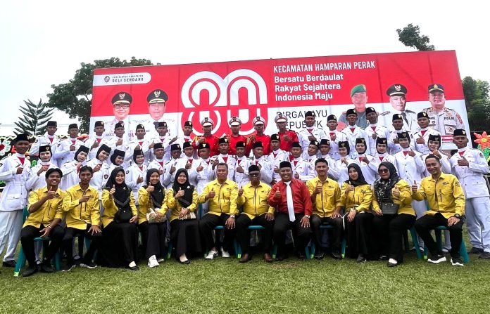 PancaPena.com – Hamparan Perak, 17 Agustus 2025 – Suasana upacara peringatan Hari Ulang Tahun (HUT) ke-78 Republik Indonesia di Kecamatan Hamparan Perak berlangsung khidmat dan meriah. Momen istimewa ini semakin membanggakan karena enam orang siswa SMK PAB 5 Klambir Lima dipercaya menjadi bagian dari Pasukan Pengibar Bendera (Paskibra) tingkat kecamatan.