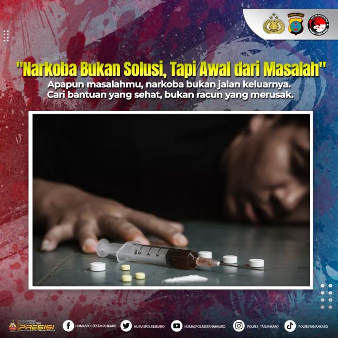 Karo — Pancapena.com – Dalam upaya menekan penyalahgunaan narkotika di wilayah hukumnya, Polres Tanah Karo terus menggencarkan edukasi bahaya narkoba kepada masyarakat. Dengan mengusung pesan kuat “Narkoba bukan solusi, tapi awal dari masalah,” kampanye ini menyasar berbagai lapisan masyarakat, khususnya generasi muda yang rentan terpengaruh.