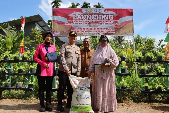 Pidie Jaya – Pancapena.com – Dalam upaya memperkuat ketahanan pangan dan mendukung program makan bergizi gratis, Kapolres Pidie Jaya AKBP Ahmad Faisal Pasaribu, S.H., S.I.K., M.H., bersama Ketua Bhayangkari Cabang Pidie Jaya, Ny. Dewi Ahmad Faisal Pasaribu, resmi meluncurkan Program Penguatan Pekarangan Pangan Lestari (P2L), di Gampong Dayah Baroh, Kecamatan Ulim, Kabupaten Pidie Jaya, Senin (24/02/2025).