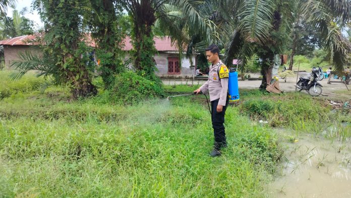 Dengan luas sekitar lima rante, lahan tersebut akan dimanfaatkan untuk menanam tanaman bergizi seperti timun dan terong. Sebagai langkah awal, Bhabinkamtibmas turut melakukan penyemprotan racun guna menyiapkan lahan sebelum penanaman bibit dilakukan.