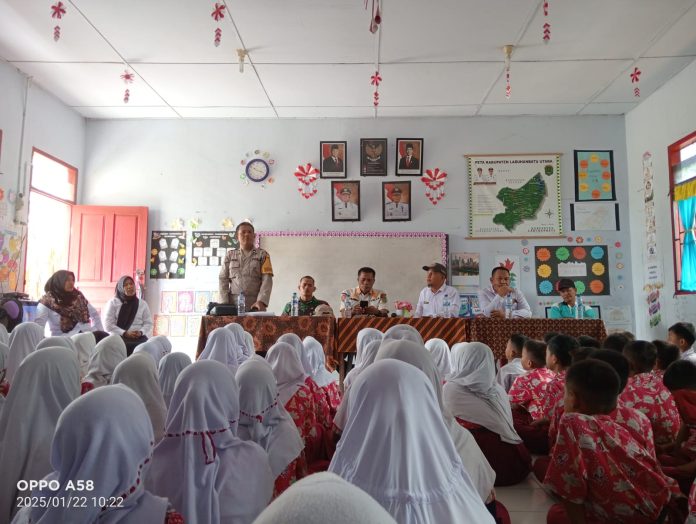 Pancapena.com – Labuhanbatu Utara – Dalam upaya meningkatkan kesadaran akan bahaya kenakalan remaja sejak dini, Bhabinkamtibmas Polsek Kualuh Hilir, AIPTU YP Hutagaol, melaksanakan penyuluhan kepada siswa-siswi SD Negeri 115458 di Desa Pangkalan Lunang, Kecamatan Kualuh Leidong, Kabupaten Labuhanbatu Utara. Kegiatan yang berlangsung pada Rabu (22/1/25) ini diikuti oleh siswa kelas 4, 5, dan 6.