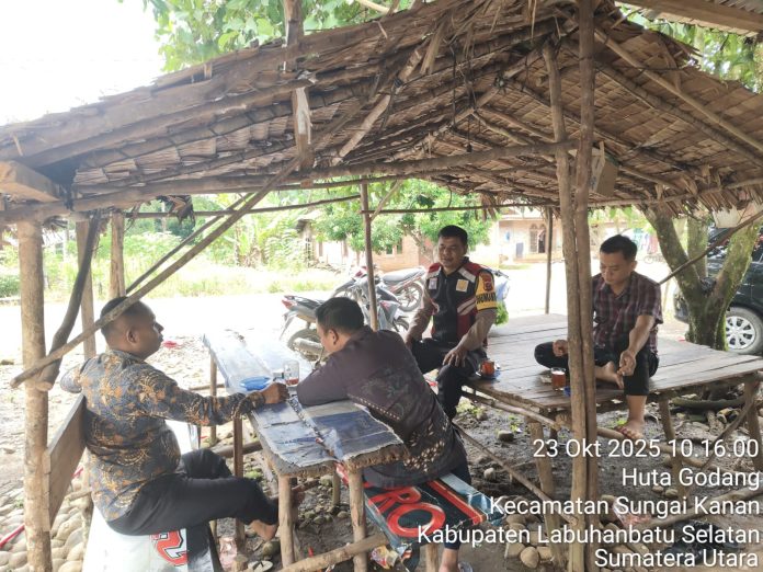 Labuhanbatu Selatan — Pancapena.com – Dalam upaya menciptakan situasi keamanan dan ketertiban masyarakat (Kamtibmas) yang kondusif, Bhabinkamtibmas Polsek Sei Kanan melaksanakan kegiatan Door to Door System (DDS) dan sambang warga di Dusun Sampean Timur, Desa Sampean, Kecamatan Sei Kanan, Kabupaten Labuhanbatu Selatan, Kamis (23/10/2025).
