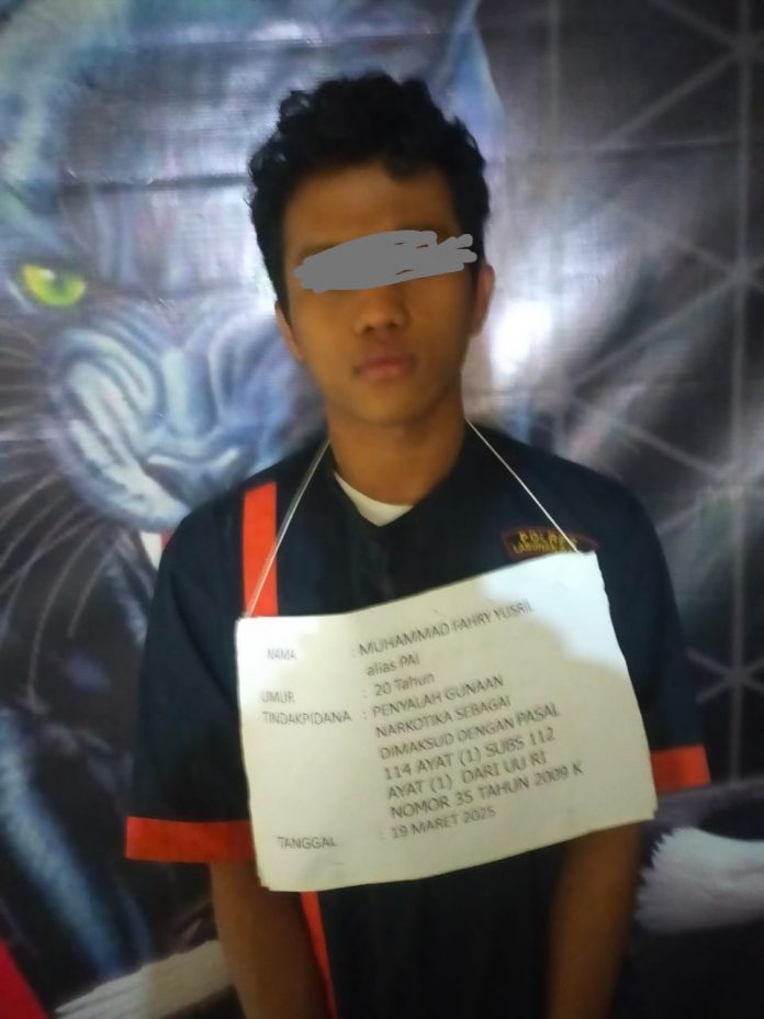 Pancapena.com – Tim Opsnal Polsek Bilah Hulu Polres Labuhanbatu berhasil mengungkap kasus penyalahgunaan narkotika di wilayah hukumnya. Seorang pemuda berinisial MFY alias Fai (20), warga Dusun Cinta Makmur, Desa Perbaungan, Kecamatan Bilah Hulu, Kabupaten Labuhanbatu, diamankan pada Rabu (19/3/2025) sekitar pukul 00.30 WIB di sebuah warung di Dusun Pondok Batu, Desa Pondok Batu.