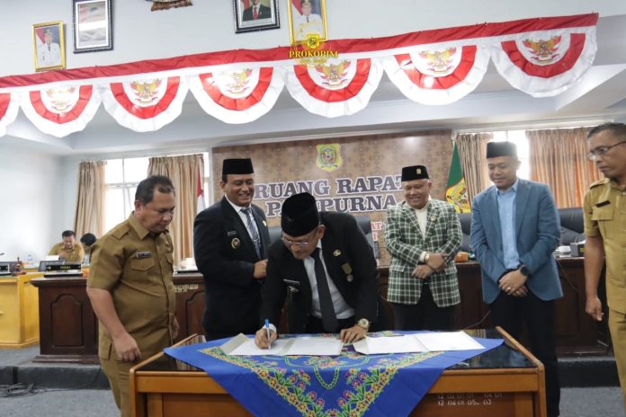 Usai Penyampaian Pendapat Akhir, Bupati Dairi Kegiatan Dilanjutkan dengan Penandatanganan Berita Acara Persetujuan Bersama Atas Ranperda RPJMD Kabupaten Dairi Tahun 2025-2029. (Tim)