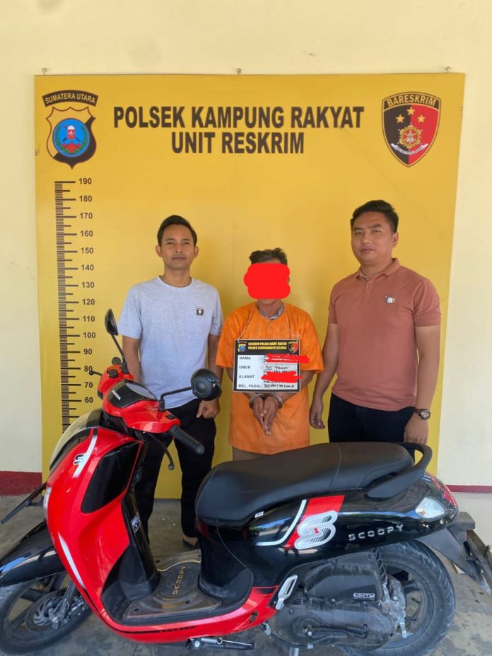 Pelaku ditangkap di Desa Pematang Seleng, Kecamatan Bilah Hulu, Kabupaten Labuhanbatu. Dari hasil interogasi, tersangka mengakui perbuatannya. Polisi juga berhasil mengamankan barang bukti berupa satu unit sepeda motor Honda Scoopy, kunci kontak, dan STNK.