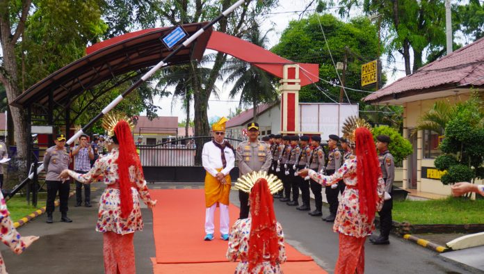 Kapolres juga menyampaikan permohonan maaf apabila ada kekurangan dalam penyambutan, namun tetap menyambut hangat Dr. Hinca dengan ungkapan, “Selamat datang, Bapak Hinca Panjaitan, di Polres Langkat.”