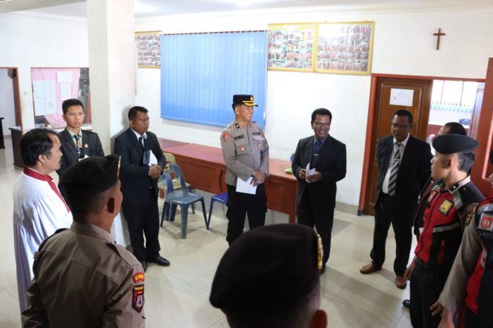 Dairi – Pancapena.com – Dalam Rangka Menjamin Rasa Aman Umat Kristiani yang Menjalankan Ibadah Memperingati Paskah Hari Kedua, Kapolres Dairi, Faisal Andri Pratomo, SH, SIK, MM, M.Si melalui Kabag Ops Polres Dairi, Kompol Syahrial Sirait, SH, MH Melaksanakan Pengecekan Langsung Terhadap Personil yang Bertugas disejumlah Gereja. Senin, (21/04/2025) di Seputaran Kota Sidikalang, Kabupaten Dairi, Sumatera Utara, Indonesia.