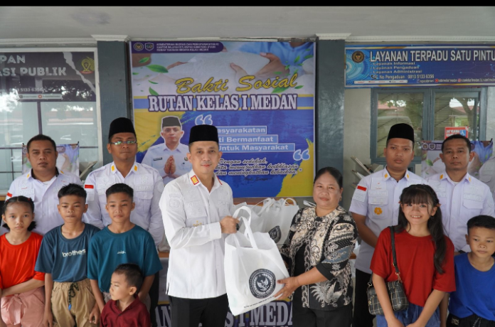 Medan – Dalam rangka menyambut tahun baru Islam 1 Muharram 1447 H. Rumah Tahanan Negara (Rutan) Kelas I Medan Kanwil Ditjenpas Sumut menunjukkan kepedulian dengan menggelar kegiatan bakti sosial berupa pemberian sembako kepada keluarga warga binaan kurang mampu dan anak-anak yatim dari panti asuhan. Kamis (26/6). Kegiatan ini merupakan bagian dari mewujudkan 13 Program Akselerasi yang dicanangkan oleh Menteri Imigrasi dan Pemasyarakatan, Agus Andrianto.