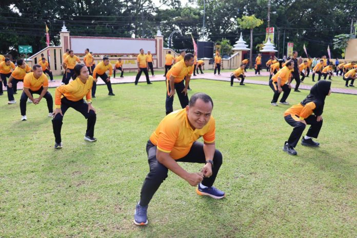 Kegiatan ini diikuti oleh seluruh personel dari berbagai satuan fungsi dan diawali dengan apel pagi, kemudian dilanjutkan dengan senam bersama yang berlangsung penuh semangat.
