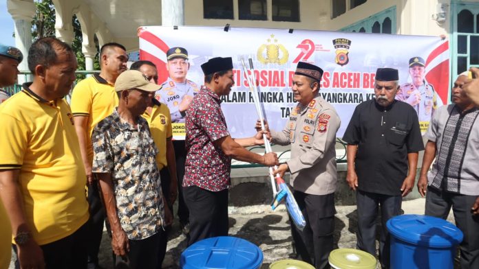 Selain kegiatan kebersihan, Polres Aceh Besar juga menyerahkan bantuan berupa alat-alat kebersihan dan cat tembok kepada pengurus meunasah sebagai bentuk dukungan dan rasa syukur menyambut Hari Bhayangkara ke-79, sekaligus mempererat tali silaturahmi antara Polri dan masyarakat.