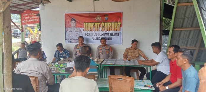 Pancapena.com – Polres Labuhanbatu Selatan kembali menggelar kegiatan Jumat Curhat sebagai upaya membangun komunikasi langsung dengan masyarakat. Kegiatan kali ini dilaksanakan di Warung Kopi Yunus, Lingkungan Martopotan, Kecamatan Sei Kanan, Kabupaten Labuhanbatu Selatan, Jumat (tanggal sesuai pelaksanaan).