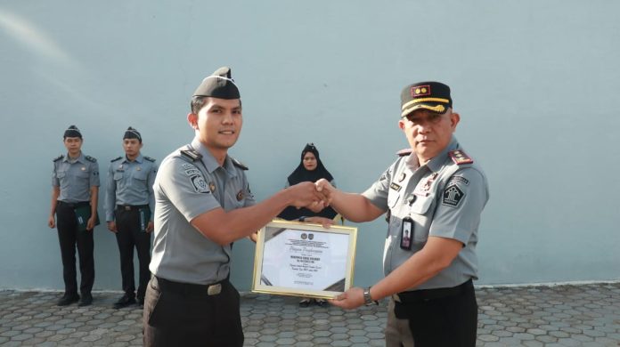 Rantauprapat, 15 Juli 2025 — Pancapena.com – Pancapena.com – Kepala Lembaga Pemasyarakatan Kelas IIA Rantauprapat, Khairul Bahri Siregar, memimpin langsung apel pagi di halaman utama lapas, Selasa (15/7). Apel rutin tersebut menjadi momentum istimewa karena dirangkaikan dengan pemberian penghargaan kepada dua pegawai teladan, Faisal Pasaribu dan Daud Jordan.