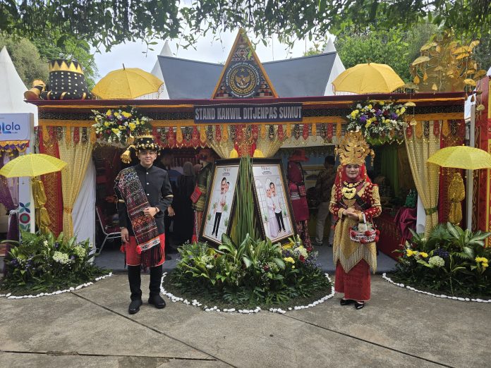 Menambah daya tarik, para petugas stan mengenakan busana adat Batak Angkola, lengkap dengan ulos dan mahkota emas, yang menggambarkan identitas budaya dan kebanggaan daerah. Hal ini menjadi daya tarik tersendiri bagi pengunjung yang ingin berinteraksi atau berfoto bersama.