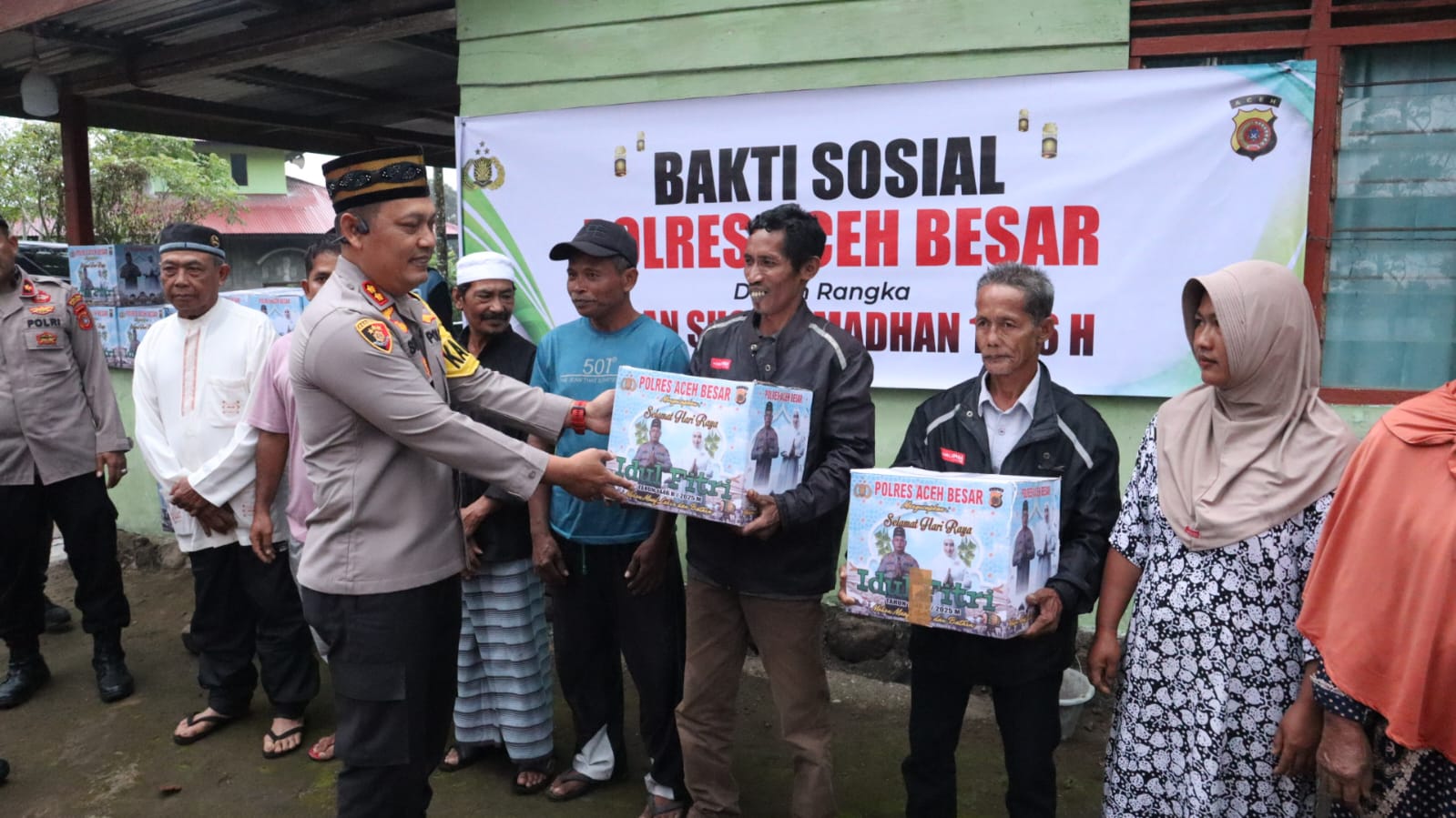 Aceh Besar, – Pancapena.com – Kapolres Aceh Besar AKBP Sujoko S.I.K.,M.H., di dampingi ibu Ketua Bhayangkari Cabang Aceh Besar Ny. Nining Sujoko beserta PJU Polres Aceh Besar dan Pengurus Bhayangkari Cabang menggelar Bakti Sosial berupa memberikan paket sembako kepada masyarakat kurang mampu dengan tujuan untuk merajut tali kasih dan mengurangi beban ekonomi selama Bulan Suci Ramadhan bertempat di Saree Kecamatan Lembah Seulawah, Rabu (26/03/2025)