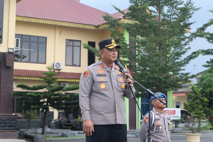 BATUBARA | Pancapena.com – Polres Batubara menggelar Apel Kesiapan Pengamanan (Pam) Perayaan Malam Takbiran dan Sholat Idul Fitri 1446 H di halaman Mapolres Batubara, Jalan Perintis Kemerdekaan No. 28, Kelurahan Lima Puluh, Kecamatan Lima Puluh Kota, Kabupaten Batubara, pada Minggu, 30 Maret 2025. Apel ini dipimpin langsung oleh Kapolres Batubara, AKBP Doly Nelson H.H Nainggolan, S.H., M.H., serta diikuti oleh personel Polres Batubara dan jajaran.