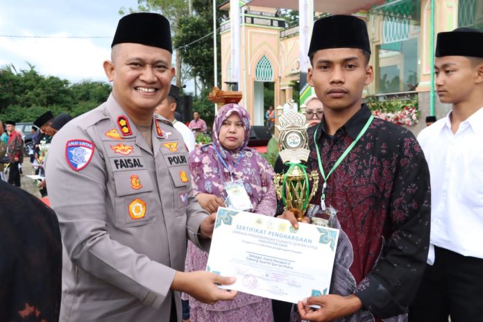 Dairi – Pancapena.com – Kapolres Dairi, AKBP Faisal Andri Pratomo, SH, SIK, MM, M.Si, Menghadiri Acara Penutupan Musabaqah Tilawatil Qur’an (MTQ) Ke 50 Tahun 2025 Tingkat Kabupaten Dairi. Selasa, (06/05/2025) di Gedung LPTQ, Desa Bintang Marsada, Kabupaten Dairi, Provinsi Sumatera Utara, Indonesia.
