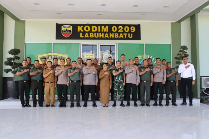 Pancapena.com – Labuhanbatu – Dalam rangka mempererat sinergi lintas institusi pasca Idul Fitri 1446 H, Kapolres Labuhanbatu AKBP Choky Sentosa Meliala, S.I.K., S.H., M.H., bersama Bupati Labuhanbatu dr. Maya Hasmita, Sp.OG, MKM, melaksanakan kunjungan kerja dan halal bi halal ke Makodim 0209/Labuhanbatu, Senin (21/04/2025). Kegiatan berlangsung di Markas Kodim 0209/LB, Jl. Pramuka, Kelurahan Padang Matinggi, Kecamatan Rantau Utara.