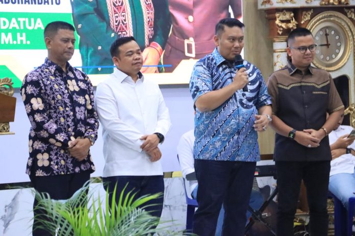 Labuhanbatu — Pancapena.com – Kapolres Labuhanbatu, AKBP Choky Sentosa Meliala, S.I.K., S.H., M.H., menghadiri kegiatan ramah tamah dalam rangka penyambutan Kepala Kejaksaan Negeri (Kajari) Labuhanbatu yang baru, Asnath Anytha Idatua Hutagalung, S.H., M.H., Kamis malam, 24 Juli 2025. Kegiatan berlangsung di Pendopo Rumah Dinas Bupati Labuhanbatu, Jalan WR. Supratman, Kecamatan Rantau Utara.