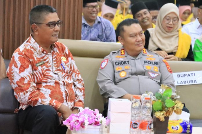 Tampak pula Rektor ULB Assoc. Prof. Ade Parlaungan Nasution, Ph.D., Ketua Yayasan ULB Halomon Nasution, S.H., M.H., perwakilan LLDIKTI Wilayah I, Kepala Cabang Dinas Pendidikan Wilayah 7 Sumut, dan sejumlah pejabat Polres Labuhanbatu, termasuk Kabag Ops Kompol Ferimon, S.H., M.H., Kasat Intelkam AKP Trio Romi Manik, S.H., Kasat Lantas AKP Rasidin, serta Kasat Samapta AKP Dedi Yansah Putra Ginting, S.H., M.H.