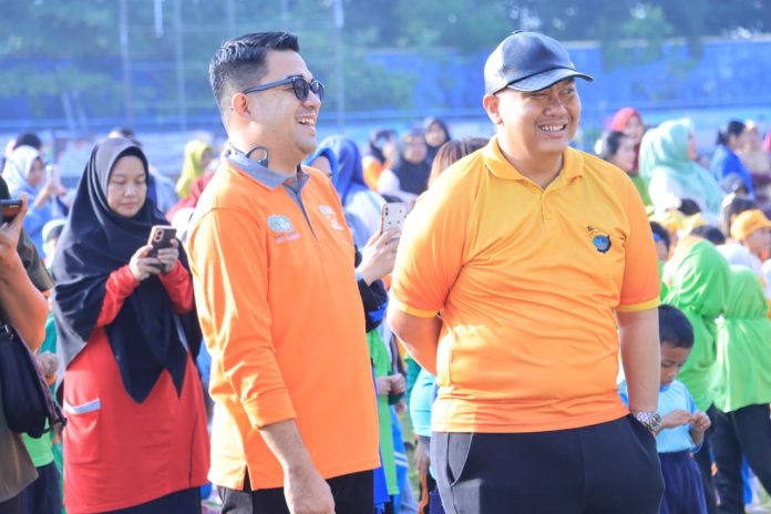Dalam suasana penuh keceriaan, Wamendikdasmen RI bersama Bupati Labuhanbatu menyapa anak-anak peserta senam sehat dan memberikan secara simbolis 10 buah tas sandang kepada siswa PAUD yang berpartisipasi aktif dalam kegiatan tersebut.