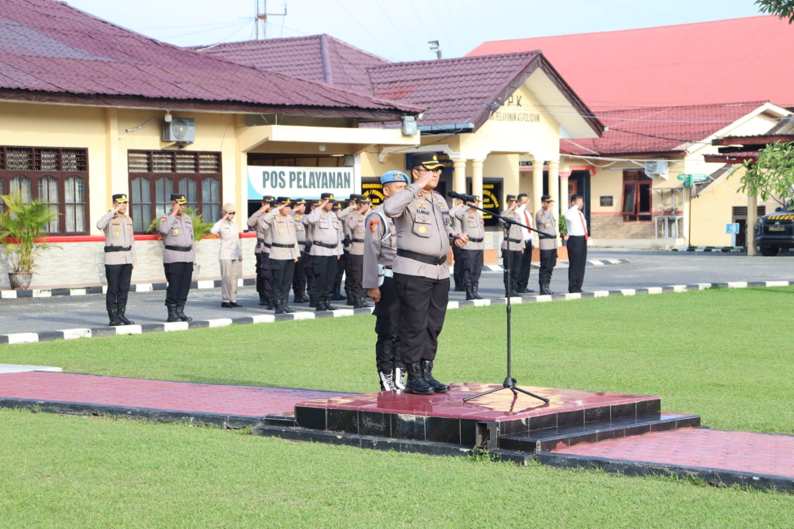 Polres Labuhanbatu menggelar upacara laporan kenaikan pangkat pengabdian bagi personel yang berhak menerima penghargaan atas dedikasi dan pengabdiannya dalam institusi Kepolisian. Upacara ini berlangsung pada Senin (3/3/2025) pagi di Lapangan Apel Mapolres Labuhanbatu, Jl. MH. Thamrin, Rantauprapat.