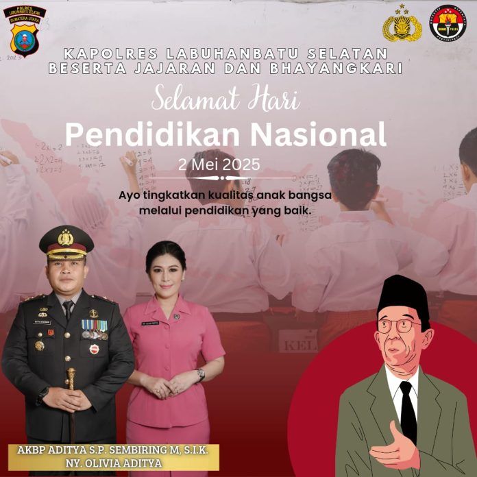 Pancapena.com – Dalam rangka memperingati Hari Pendidikan Nasional (Hardiknas) tahun 2025, Kapolres Labuhanbatu Selatan, AKBP Aditya S.P. Sembiring Muham, S.I.K., menyampaikan apresiasi kepada seluruh insan pendidikan dan mengajak masyarakat untuk terus meningkatkan kualitas pendidikan di wilayah Kabupaten Labuhanbatu Selatan.