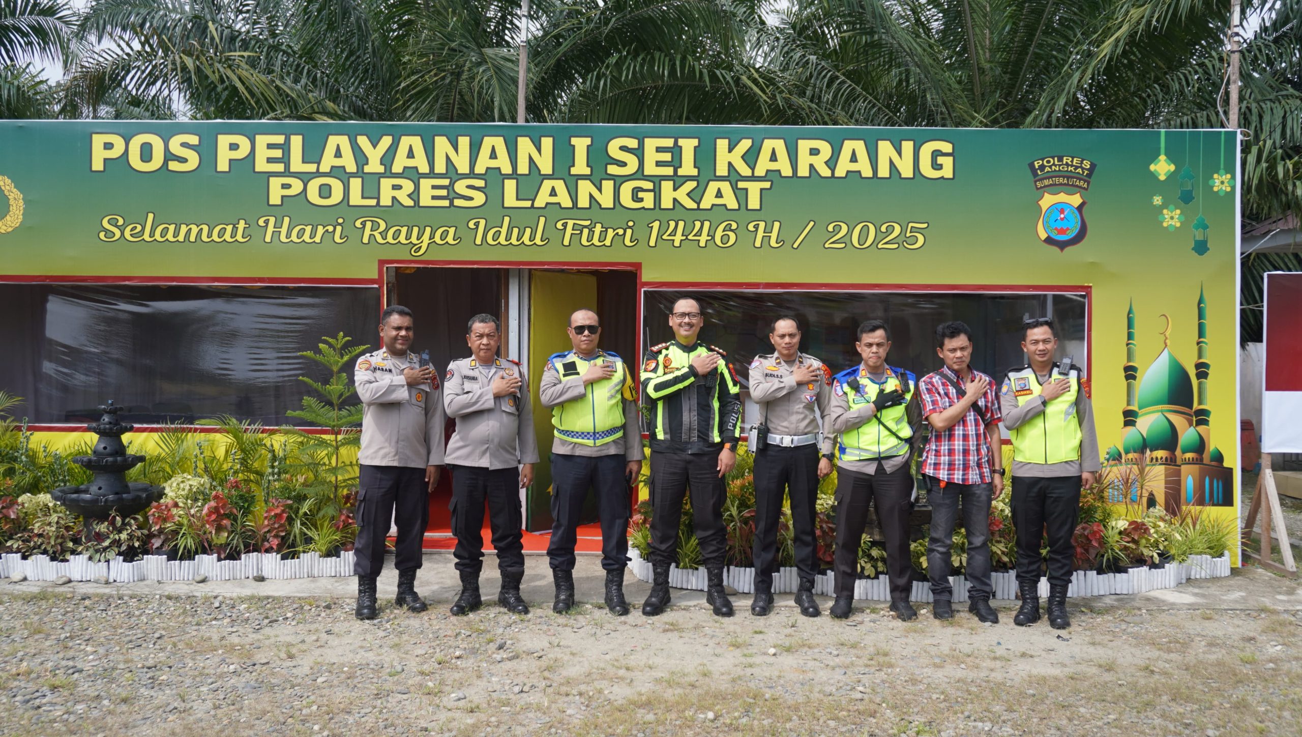 Langkat – Pancapena.com – Kapolres Langkat, AKBP David Triyo Prasojo, S.H., S.I.K., M.Si., bersama pejabat utama Polres Langkat, meninjau Pos Pengamanan (Pos Pam) dalam rangka Operasi Ketupat Toba 2025 pada Selasa (25/03/2025). Kunjungan ini dilakukan di beberapa titik strategis, yakni Pos Pelayanan Sai Karang, Pos Pelayanan Pasar X Hinai, dan Pos Pelayanan Stabat Simpang Gohor.