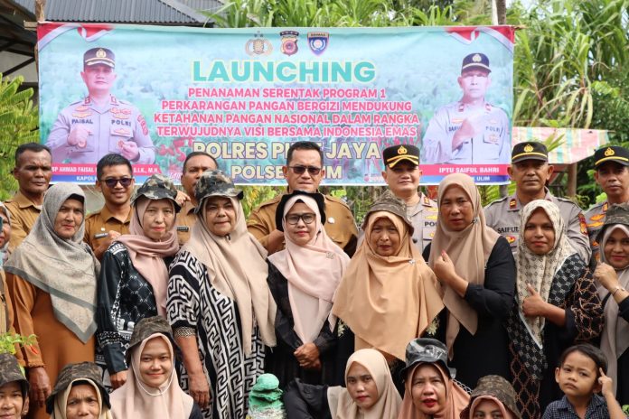 Pancapena.com | Pidie Jaya – Dalam rangka mendukung ketahanan pangan nasional dan meningkatkan kesejahteraan masyarakat, Kapolres Pidie Jaya, AKBP Ahmad Faisal Pasaribu, S.H., S.I.K., M.H., bersama Pj. Bupati Pidie Jaya, Dr. T. Dadek Ahmad, S.H., M.H., meluncurkan program Penanaman Serentak Pekarangan Pangan Bergizi pada Senin (13/01/2025) di Gampong Dayah Baroh, Kecamatan Ulim, Kabupaten Pidie Jaya.