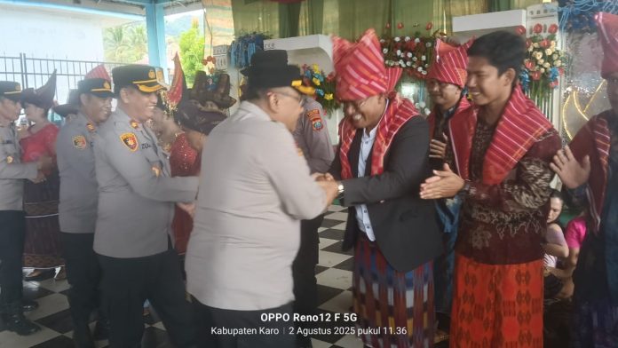 Mardingding, Karo – Pancapena.com – Kapolres Tanah Karo AKBP Eko Yulianto, S.H., S.I.K., M.M., M.Tr.Opsla menghadiri pesta adat keluarga besar Merga Kembaren yang digelar di Jambur Bukit Kadir, Desa Mardingding, Kecamatan Mardingding, Kabupaten Karo, Sabtu (2/8/2025).