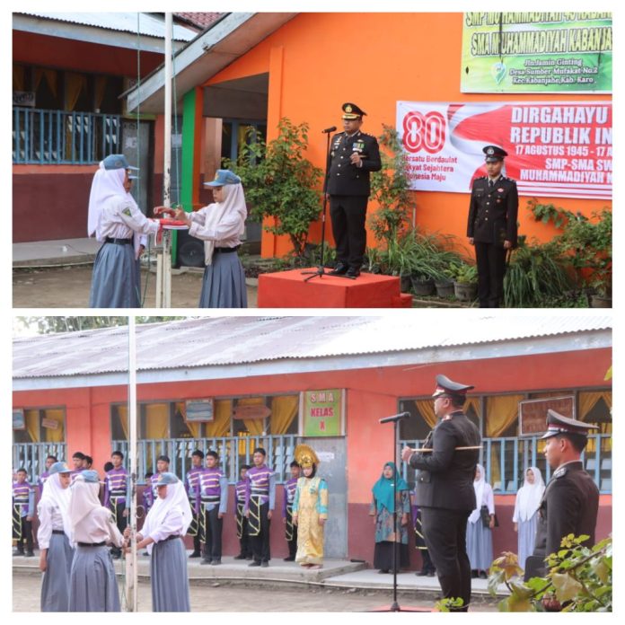 Kabanjahe, Karo – Pancapena.com – Dalam rangka memperingati Hari Ulang Tahun (HUT) ke-80 Kemerdekaan Republik Indonesia, Kapolres Tanah Karo AKBP Eko Yulianto, S.H., S.I.K., M.M., M.Tr.Opsla bertindak sebagai Inspektur Upacara (Irup) di Yayasan Pendidikan Muhammadiyah Kabanjahe, Minggu (17/8) pukul 07.00 WIB.