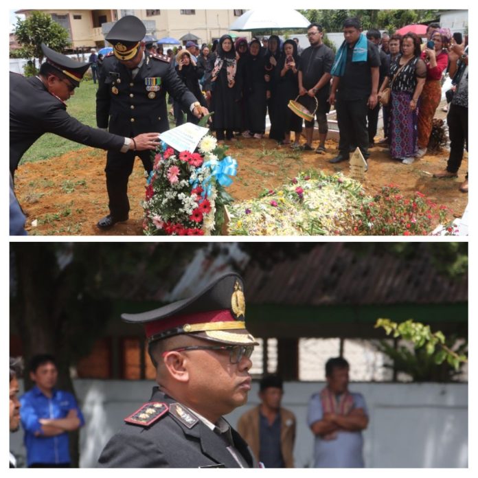 Dalam sambutannya, Kapolres Tanah Karo menyampaikan rasa duka yang mendalam dan penghargaan setinggi-tingginya atas jasa dan pengabdian almarhum selama bertugas.