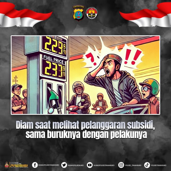 Karo — Pancapena.com – Dalam upaya memperkuat penegakan hukum terhadap penyalahgunaan subsidi pemerintah, Kasat Reskrim Polres Tanah Karo AKP Rasmaju Tarigan, S.H., menegaskan bahwa sikap diam masyarakat saat menyaksikan pelanggaran subsidi, seperti penyelewengan BBM bersubsidi, pupuk, atau bantuan sosial, sama buruknya dengan tindakan pelanggaran itu sendiri.