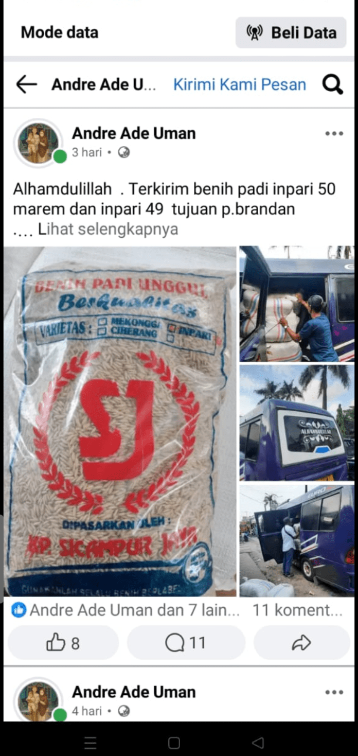 Sebanyak 3.120 karung bibit bantuan dari Dinas Pertanian seharusnya dibagikan kepada kelompok tani. Namun, muncul dugaan kuat sebagian bibit tersebut dijual ke luar daerah, setelah beredar postingan media sosial yang memperlihatkan pengiriman menggunakan angkutan umum.