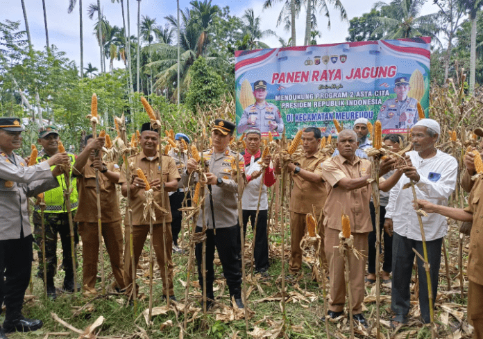 PIDIE JAYA Panca Pena.com – Dalam upaya nyata mendukung Program Asta Cita Presiden RI, khususnya poin kedua tentang penguatan ketahanan pangan, Kapolres Pidie Jaya AKBP Ahmad Faisal Pasaribu, S.H., S.I.K., M.H. memimpin langsung kegiatan Panen Raya Jagung di Gampong Beurawang, Kecamatan Meureudu, Senin (19/5/2025).