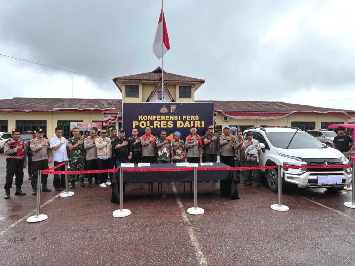 Kapolres Dairi, AKBP Otniel Siahaan, S.I.K., M.I.K. saat Memimpin Konferensi Pers itu mengatakan, Pihaknya turut Mengamankan salah Seorang Tersangka Berinisial SP.