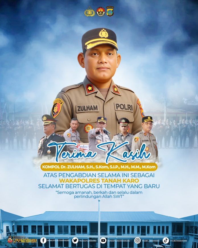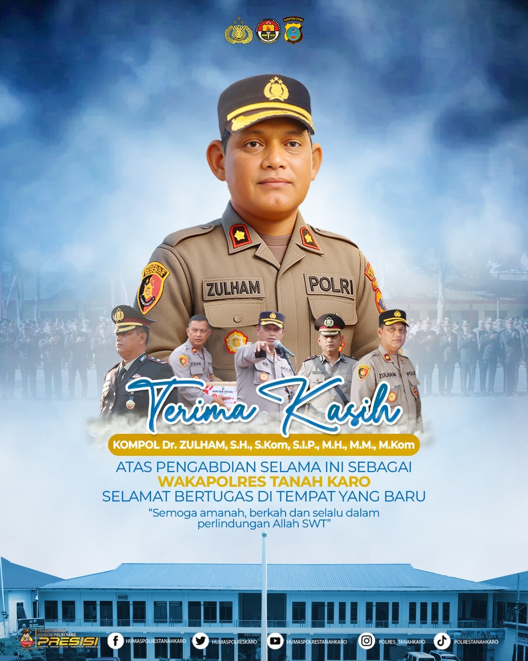 Polres Tanah Karo juga menyampaikan ucapan selamat atas jabatan baru yang kini diemban oleh Kompol Dr. Zulham. Semoga amanah baru ini menjadi sumber semangat dan motivasi untuk terus melanjutkan pengabdian kepada masyarakat, bangsa, dan negara.