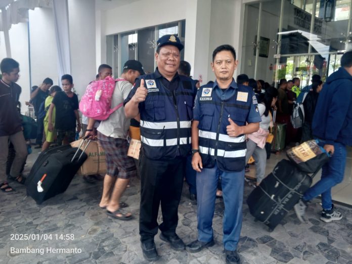 Kegiatan ini dilakukan untuk memastikan keamanan dan kenyamanan penumpang yang baru selesai merayakan libur Natal dan Tahun Baru, serta kembali ke tempat tujuan menggunakan jasa kapal laut.