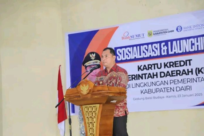 Pancapena.com – Dairi – Penjabat (Pj) Bupati Dairi, Surung Charles Bantjin, menghadiri acara sosialisasi dan launching Kartu Kredit Pemerintah Daerah (KKPD) yang dilaksanakan di Gedung Balai Budaya, Kamis (23/01/2025). Peluncuran KKPD ini menjadi salah satu langkah strategis dalam mewujudkan pengelolaan keuangan daerah yang efisien, transparan, dan akuntabel.
