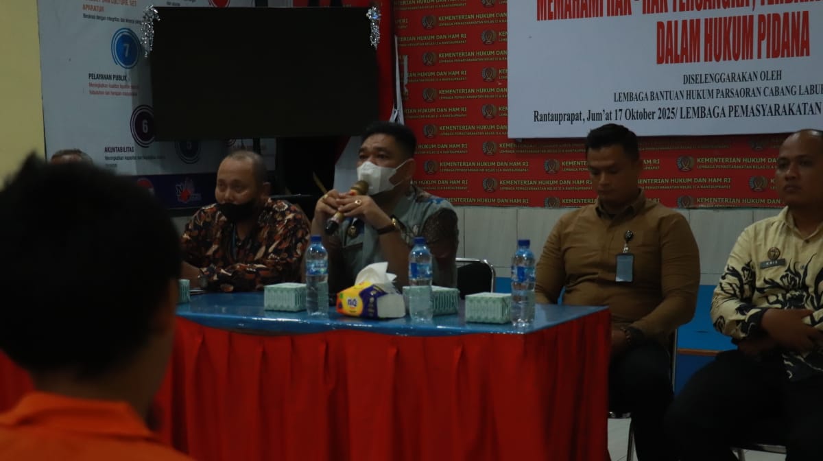 Pancapena.com – Rantauprapat, [17/10/2025] — Lembaga Bantuan Hukum (LBH) Parsaroan mengadakan kegiatan penyuluhan hukum bertajuk “Memahami Hak-Hak Tersangka, Terdakwa, dan Terpidana” di Lembaga Pemasyarakatan (Lapas) Kelas IIA Rantauprapat. Kegiatan ini diikuti oleh puluhan warga binaan yang tampak antusias mengikuti pemaparan materi dan sesi diskusi interaktif.
