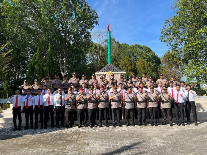 Dairi – Pancapena.com – Menjelang Hari Uang Tahun (HUT) Bhayangkara yang Ke 79 Tahun 2025, Polres Dairi Melaksanakan Upacara Berziarah dan Tabur Bunga di Taman Makam Pahlawan (TMP). Senin, (23/06/2025) di Jalan Pahlawan, Panji Sibura-Bura, Kecamatan Sidikalang, Kabupaten Dairi, Provinsi Sumatera Utara, Indonesia.