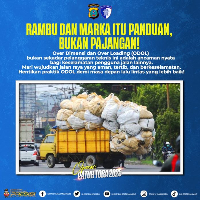 Karo — Pancapena.com – Dalam rangkaian pelaksanaan Operasi Patuh Toba 2025, Satuan Lalu Lintas Polres Tanah Karo menegaskan kembali pentingnya menaati peraturan lalu lintas, khususnya terkait pelanggaran kendaraan Over Dimension Over Loading (ODOL).