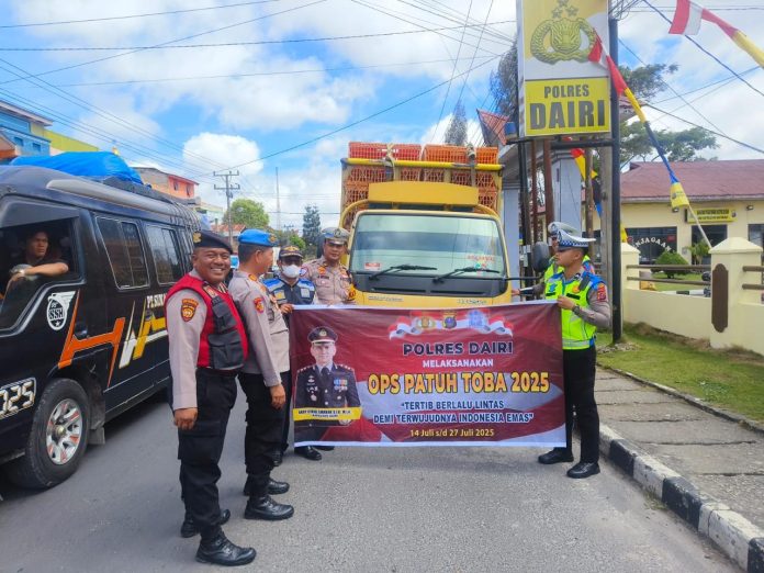 Dairi – Pancapena.com – Satuan Lalulintas (Satlantas) Polres Dairi Melaksanakan, Kegiatan Operasi Patuh Toba Tahun 2025. Jumat, (18/07/2025) di depan Mako Polres Dairi, Jalan Sisingamangaraja, Kecamatan Sidikalang, Kabupaten Dairi, Provinsi Sumatera Utara, Indonesia.