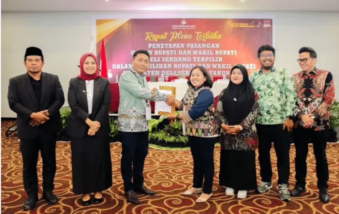Deliserdang,Pancapena.com– Komisi Pemilihan Umum (KPU) Deliserdang secara resmi menetapkan pasangan Asriludin Tambunan dan Lomlom Suwondo, yang dikenal dengan sebutan pasangan ADIL, sebagai Bupati dan Wakil Bupati Deliserdang terpilih untuk periode 2025-2030. Keputusan ini menjadi tonggak baru dalam perjalanan pemerintahan daerah, menandai era kepemimpinan yang diharapkan mampu membawa perubahan positif bagi masyarakat Deliserdang.