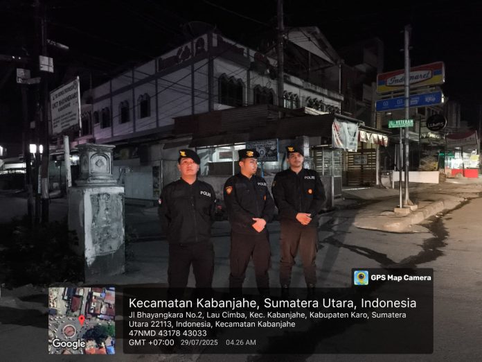 Karo — Pancapena.com – Personel Satuan Samapta Polres Tanah Karo menggelar patroli stasioner dini hari untuk menjaga stabilitas keamanan dan ketertiban masyarakat, khususnya pada jam-jam rawan. Kegiatan ini dilaksanakan pada Senin (29/7/2025) mulai pukul 03.00 WIB, dengan menyasar sejumlah titik strategis di wilayah Kabanjahe.