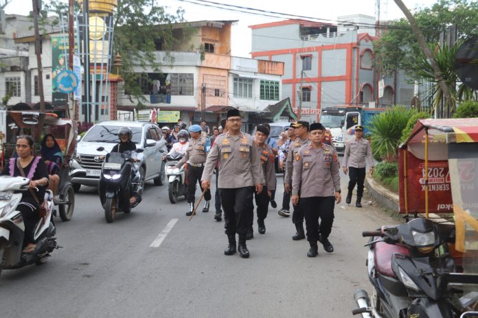 Langkat – Pancapena.com – Bulan Ramadhan menjadi momen bagi pedagang takjil untuk mencari rezeki, namun sering kali mereka menghadapi ancaman pungutan liar (pungli) yang merugikan. Untuk memastikan mereka bisa berjualan dengan aman, Kapolres Langkat, AKBP David Triyo Prasojo, SH, SIK, M.Si., turun langsung melakukan patroli jalan kaki di sejumlah titik pusat penjualan takjil.