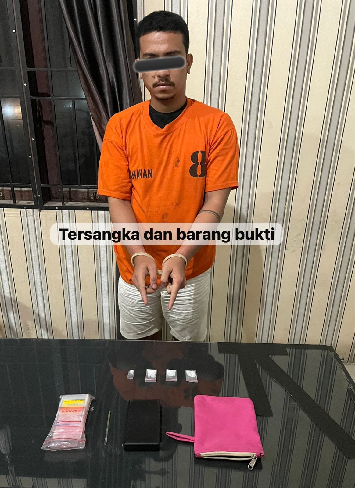 “Penggerebekan dilakukan sekitar pukul 02.00 WIB setelah personel kami memperoleh informasi bahwa pelaku berada di dalam rumah tersebut. Saat diamankan, pelaku tengah duduk di ruang tamu dan langsung dilakukan penggeledahan badan serta tempat,” ungkap Kapolres saat konferensi pers di Mapolres, Kamis (12/6) pagi.