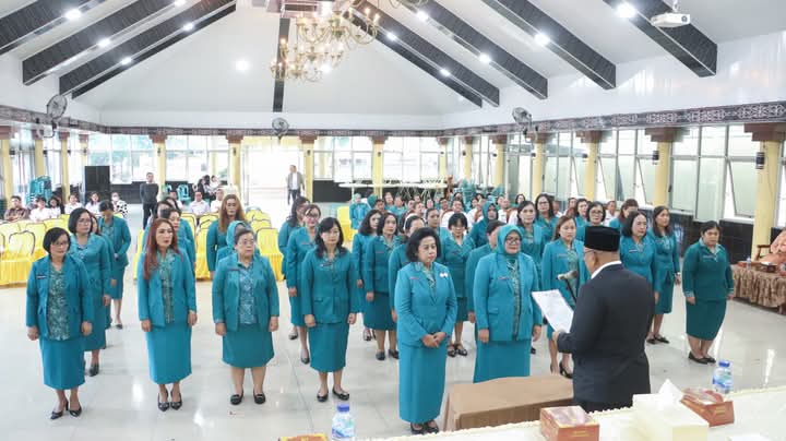 Dairi – Pancapena.com – Bupati Dairi, Ir. Vickner Sinaga, MM yang juga Ketua Tim Pembina TP PKK Kabupaten Dairi Mengukuhkan Pengurus Tim Penggerak TP PKK Kabupaten Dairi, Periode 2025-2030. Selasa, (21/05/2025) di Balai Budaya, Jalan Sisingamangaraja, Kecamatan Sidikalang, Kabupaten Dairi, Provinsi Sumatera Utara, Indonesia.
