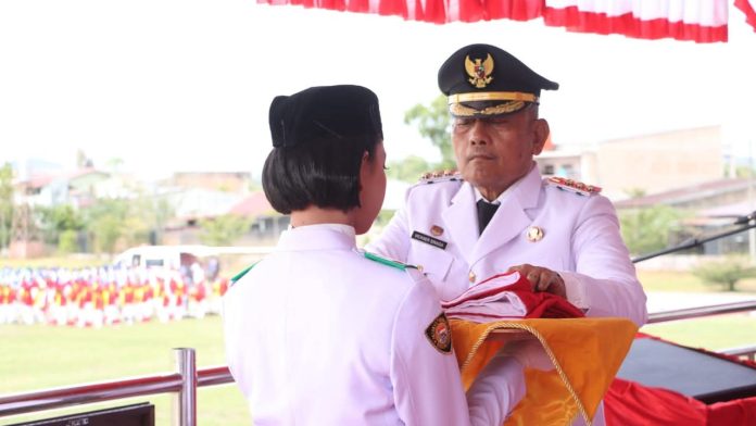 Dairi – Pancapena.com – Peringatan Detik-detik Proklamasi Dalam Rangka Hari Ulang Tahun Republik Indonesia (HUT RI) yang Ke-80 Tahun 2025 Berjalan dengan Khidmat dimana Pasukan Pengibar Bendera Pusaka (Paskibraka) Kabupaten Dairi Menjalankan Tugas dengan Sempurna Menaikkan Bendera Merah Putih. Minggu, (17/08/2025) di Stadion Utama Panji Bako, Jalan Sidikalang-Medan, Kecamatan Sitinjo, Kabupaten Dairi, Provinsi Sumatera Utara, Indonesia.